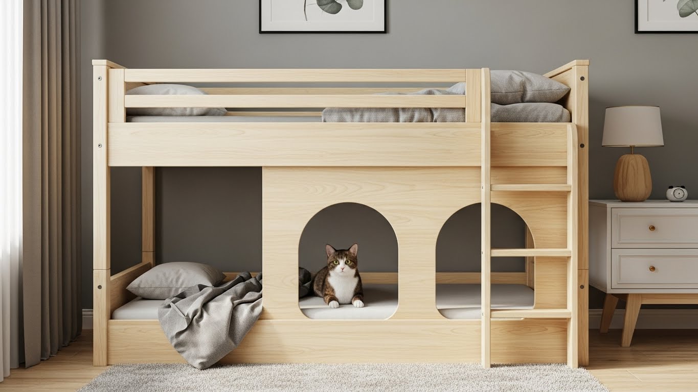 Some bunk beds now come with built-in cubbies or spaces underneath that can be transformed into a cat hideaway. This gives cats a private retreat while keeping them close to the family.