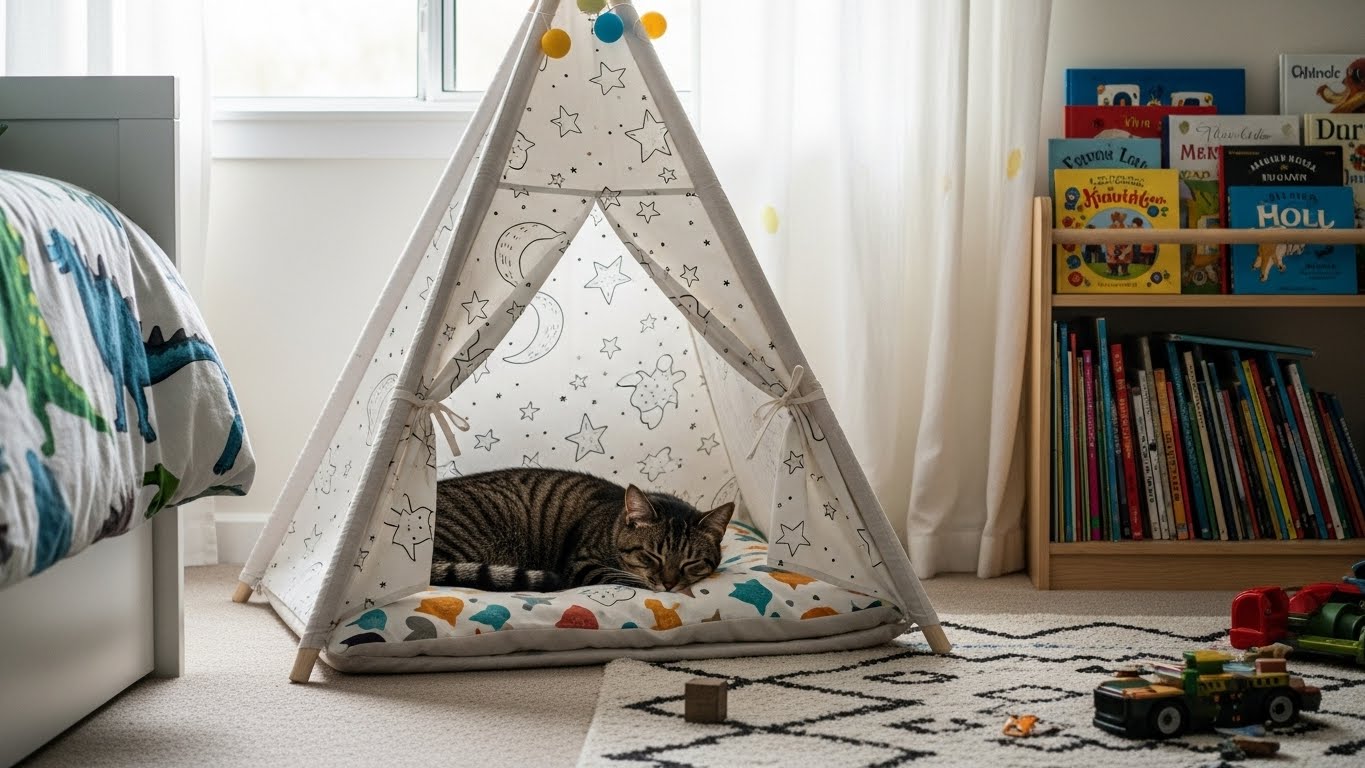 Cats benefit from having their own safe zones where they can relax, observe, and retreat when they need quiet time. Kids, on the other hand, learn respect and responsibility when they help care for a pet in their own space.
