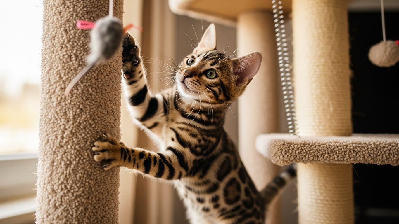 Care Tips: Bengals thrive with climbing structures, puzzle feeders, and toys that challenge their intelligence. They are ideal for active households who can meet their high energy levels.