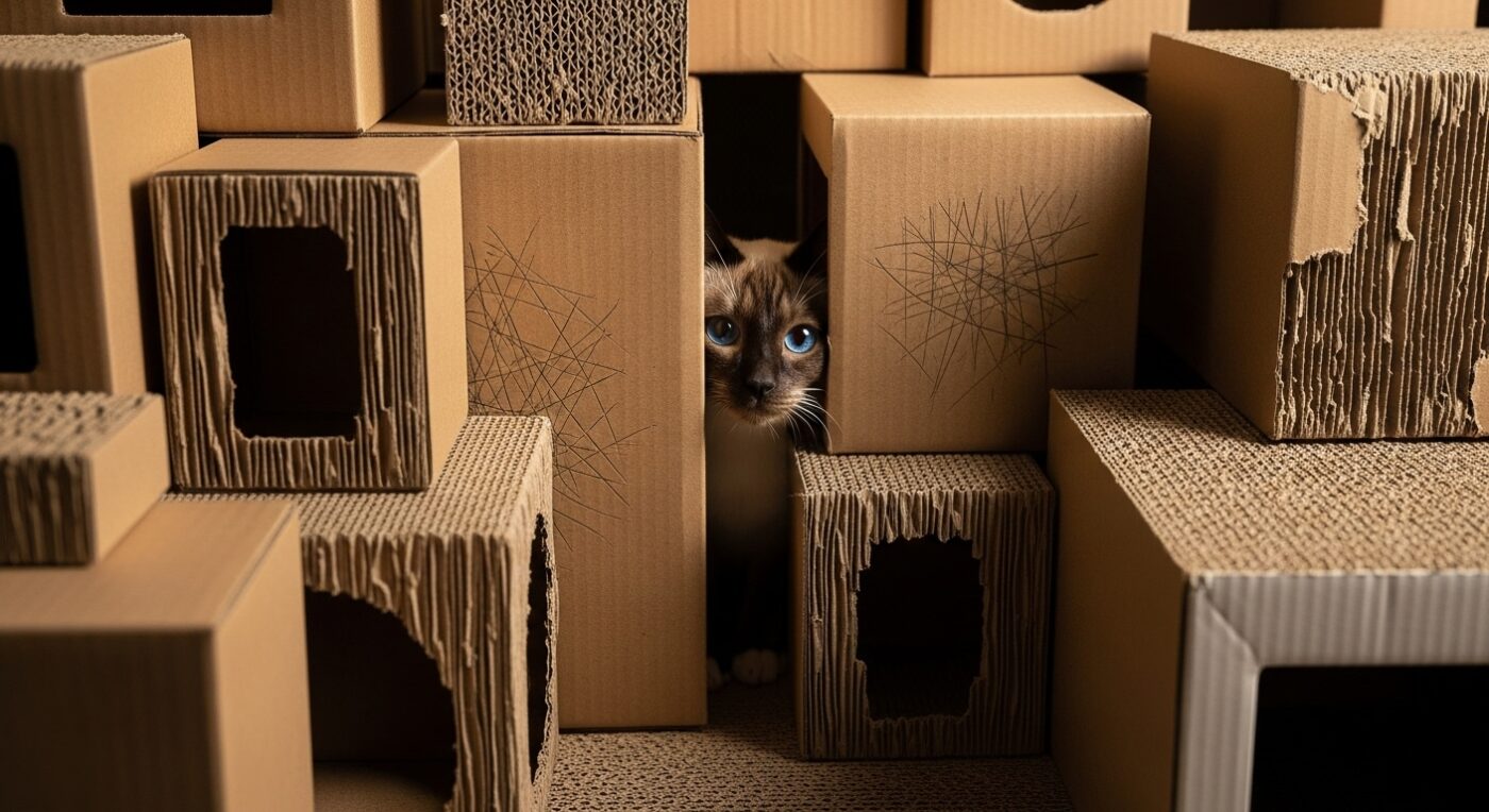 Instead of a single scratch pad, why not build a cardboard maze? Use cardboard boxes to create tunnels, openings, and compartments. Some layers can act as horizontal scratching pads, while others serve as hideouts.