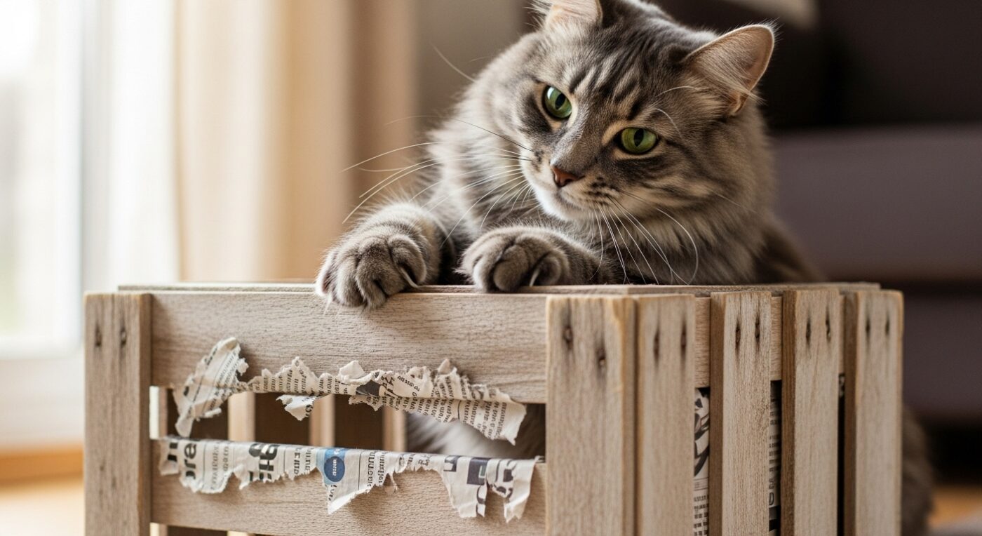 Use items you already have at home. Old wine boxes, wooden crates, or even rolled-up newspapers can become functional scratchers. Stack or glue materials together, add a little catnip, and watch your cat explore new textures.