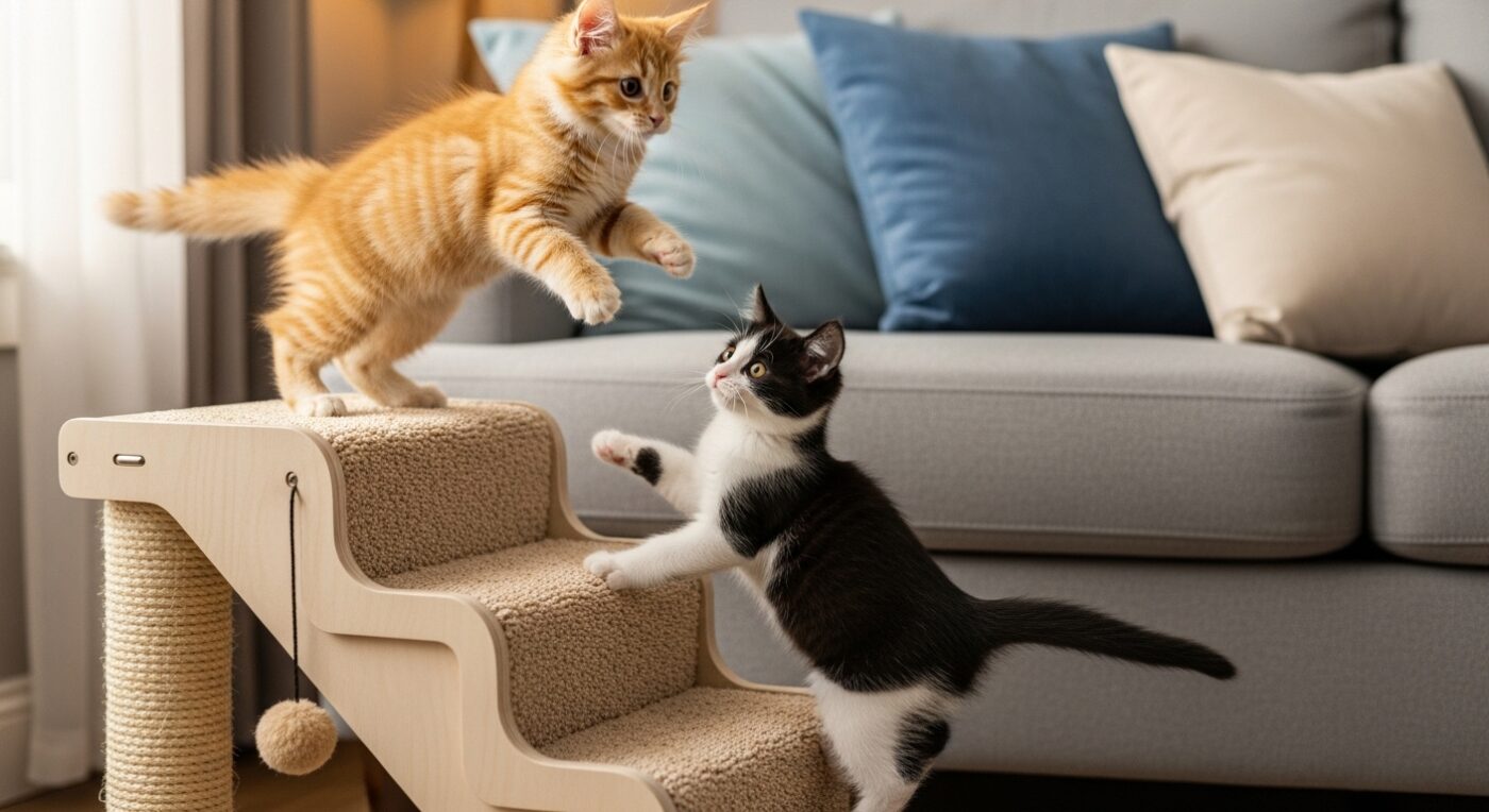 Observe your cat’s preferences — some prefer horizontal surfaces, others vertical or hanging toys.
