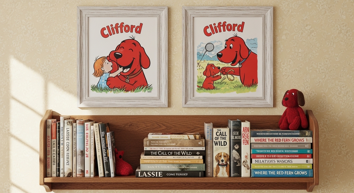 If you love vintage charm, consider basing your nursery on classic dog storybooks like Clifford the Big Red Dog or Spot the Puppy. Framed illustrations from these timeless stories can become the focal point of your baby’s room, while matching pillows and rugs add nostalgic warmth.