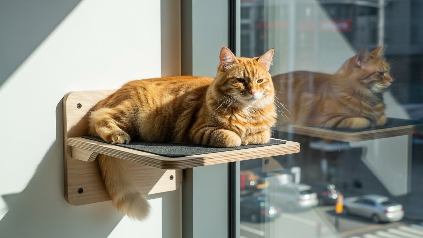Cats adore sunbathing and watching the world outside, making window perches a must-have in apartment setups. These perches can be suction-mounted or attached directly to the window sill, providing a safe vantage point for birds, cars, and passersby.