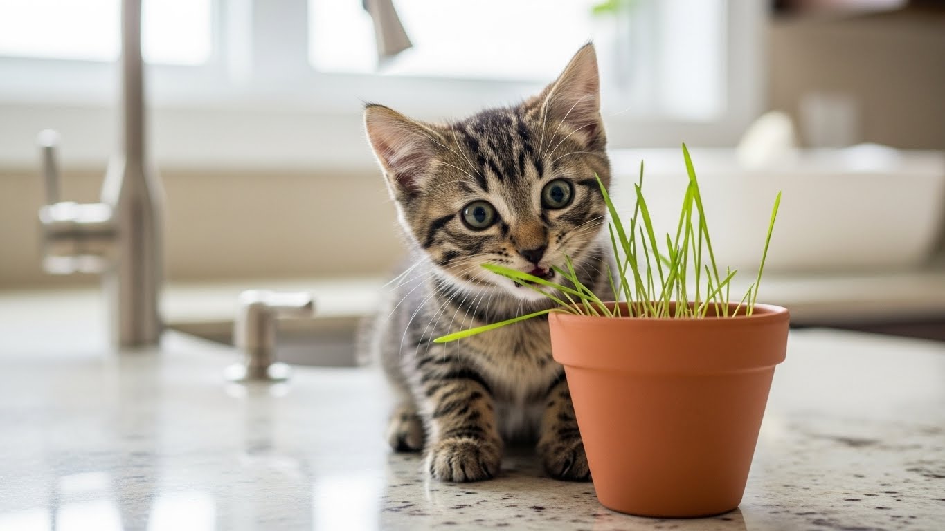Cat grass, catnip, spider plants, and bamboo are safe choices. Avoid lilies, philodendrons, and poinsettias.