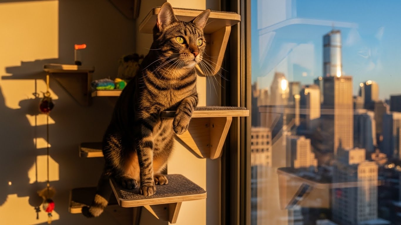 Cats love to climb and perch at elevated spots, and apartment life often lacks natural vertical territory. Investing in a sturdy cat tree or installing wall-mounted climbing shelves gives your cat the freedom to explore different heights safely.