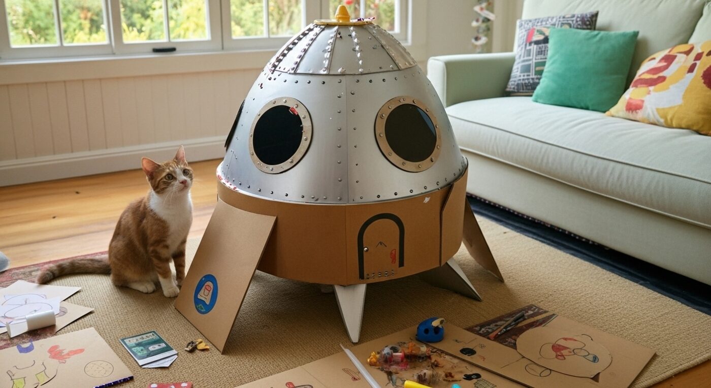 Flat-Pack Spaceship Cardboard Cat House for Adventurous Felines