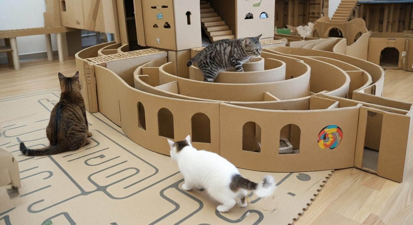 Interactive Cardboard Cat Maze with Hidden Surprises