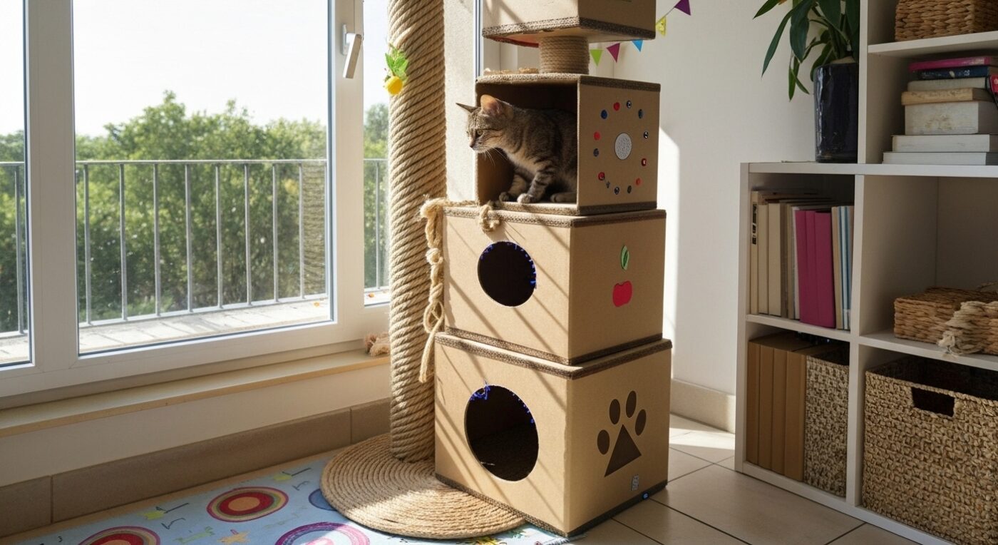 DIY Cat Tree with Stacked Cardboard Compartments