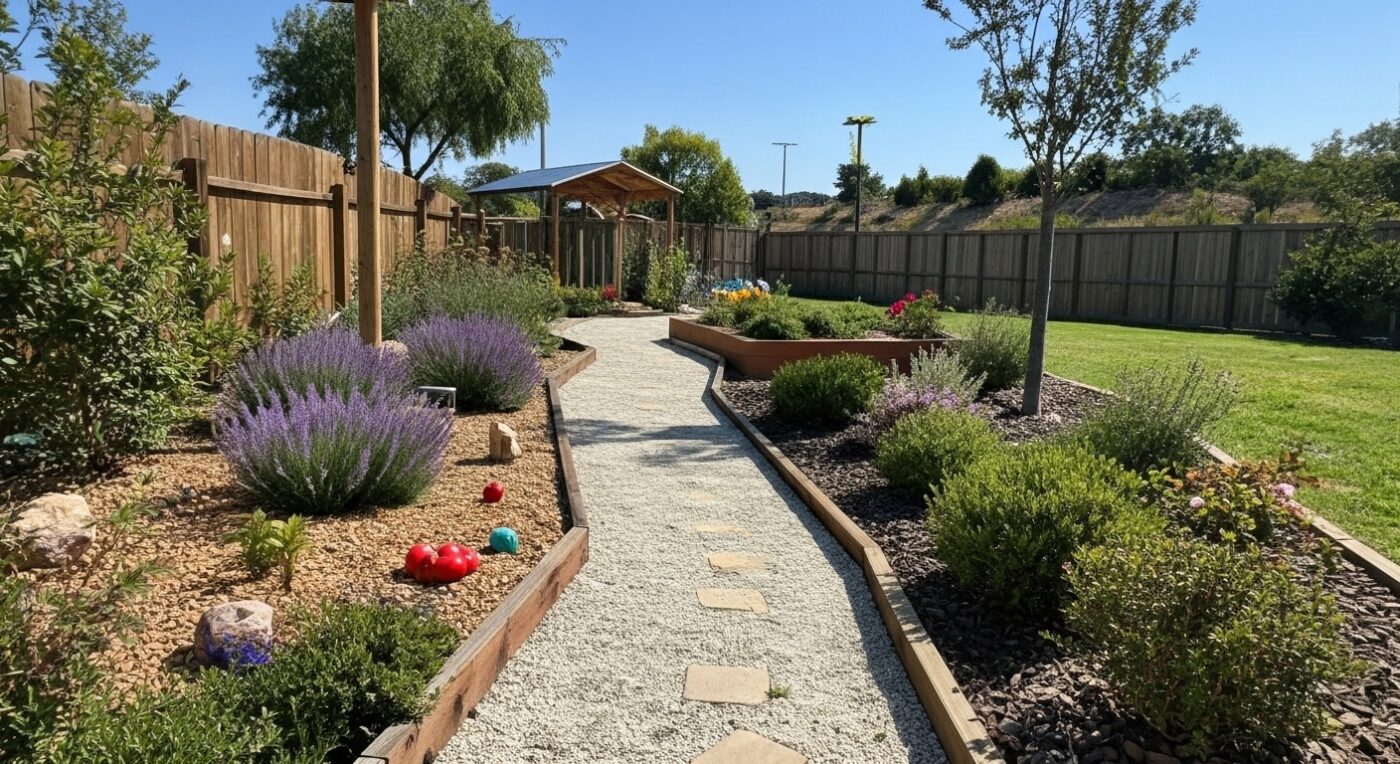 🐶 Decorative Gravel Pathway with Pet-Friendly Plants: Stylish and Functional Dog Potty Area