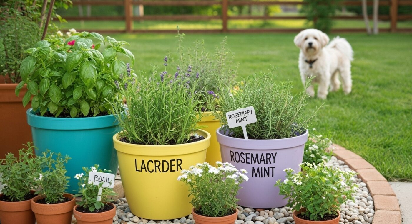 🐶 Potted Herb Garden: Refreshing and Pet-Safe Outdoor Dog Potty Area