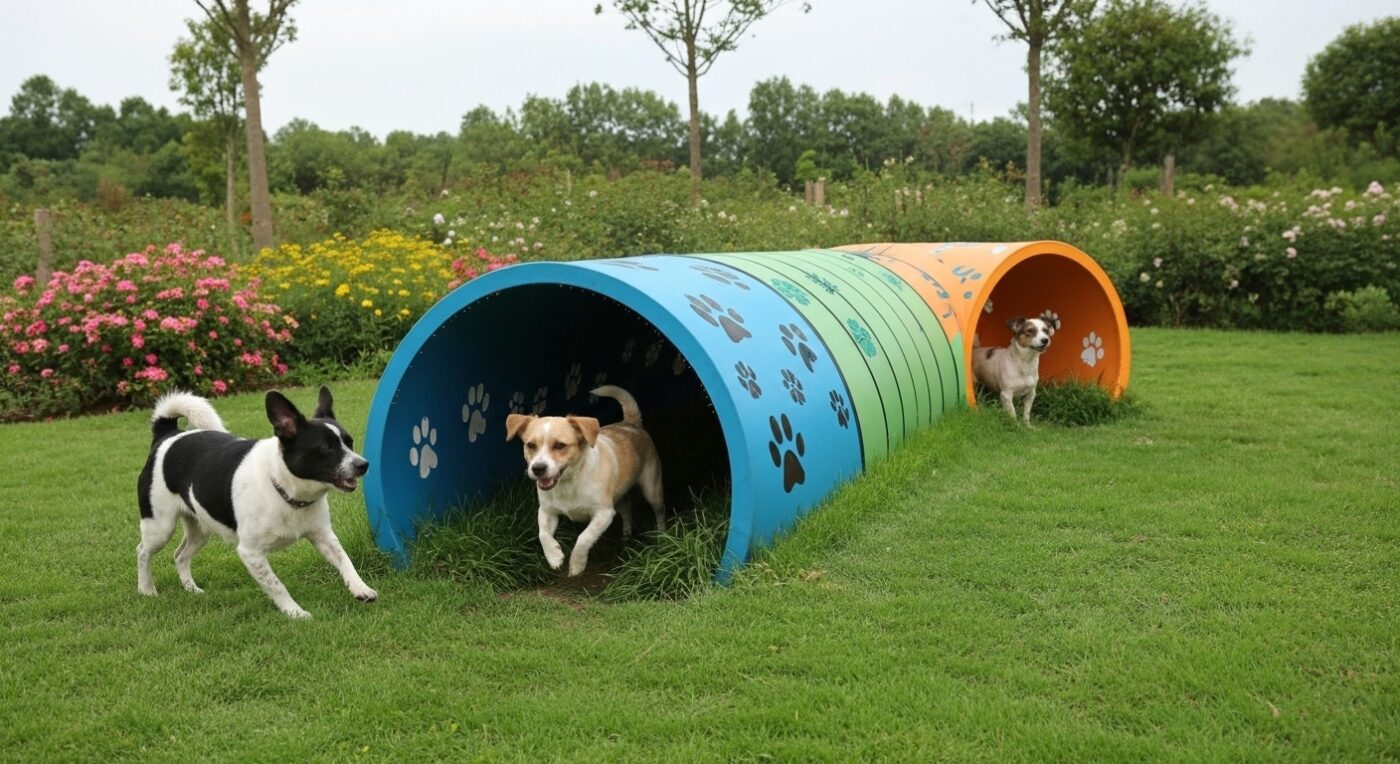 Constructed with safe, durable materials and proper drainage, this setup ensures a clean and secure environment while encouraging natural behaviors and mental stimulation. Incorporating a dog-friendly tunnel system transforms mundane potty breaks into an engaging, enriching outdoor activity, perfect for curious and energetic pets. 🐾