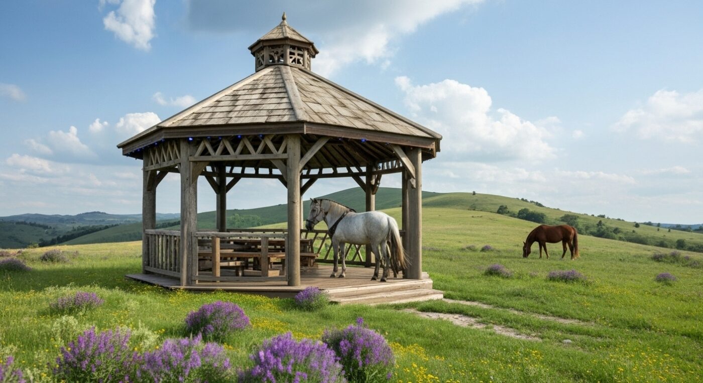 An open-air gazebo provides an ideal shaded retreat for horses, offering protection from sun and rain while allowing natural airflow. Strategically placed in paddocks or turnout areas, it gives horses a comfortable space to rest and escape harsh weather conditions. Constructed from durable materials like treated wood or metal, the gazebo is built to withstand the elements while adding a charming aesthetic to your property. For added functionality, consider incorporating benches or a feeding area, creating a versatile space for both horses and their caretakers.