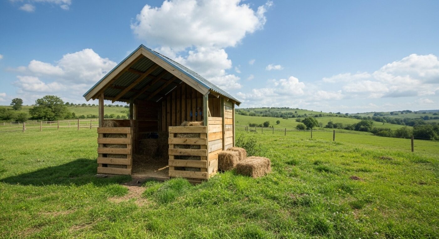 A: The open side should face away from prevailing winds and heavy weather, yet allow horses to see into the pasture and for you to access easily. For example, if your predominant wind comes from the north, you’d place the open face to the south or southeast. This reduces wind exposure and increases comfort. Budget-shelter guides emphasise wind-protected orientation.