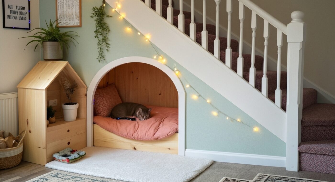 Under-Stair Cozy Cat Hideaway for Your Feline Friend