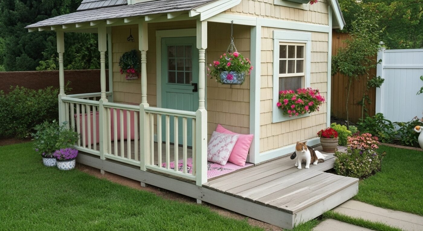 Cottage-Style Cat House with Porch
