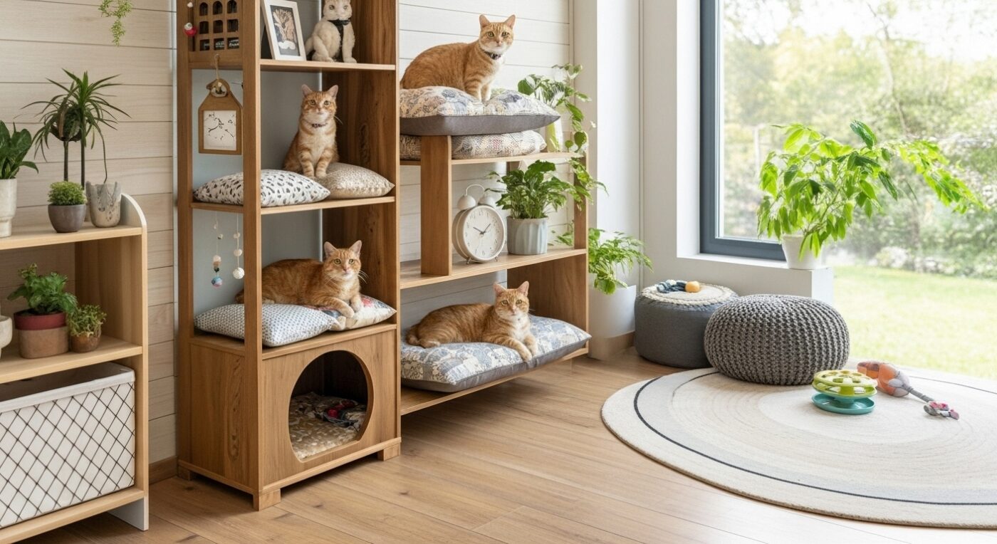 Absolutely. Even in small apartments, you can use vertical space, shelves, and multi-purpose furniture to create a dedicated cat corner. Using compact furniture and wall-mounted elements maximizes space while keeping it comfortable for your kitty.