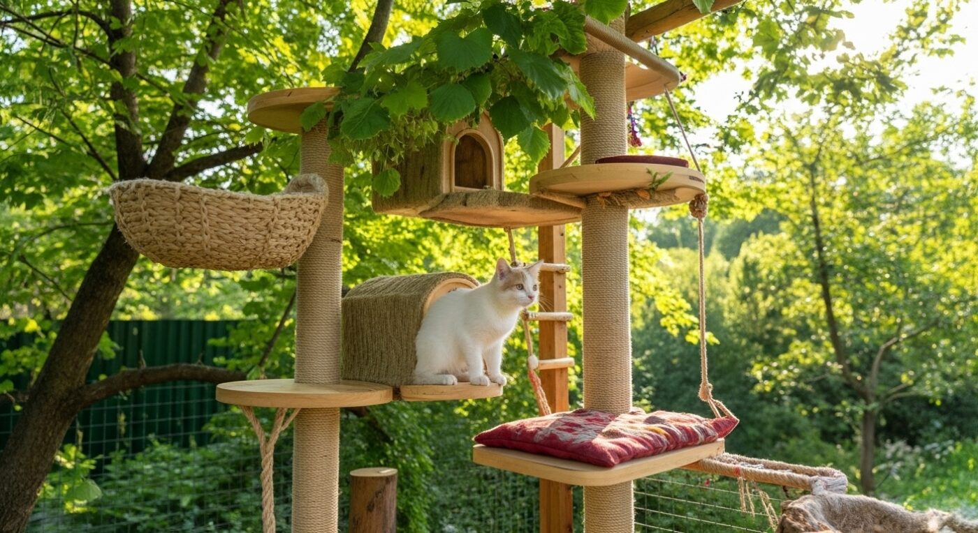Mini Rooms in a Treetop Cat Perch with Hanging Bridges