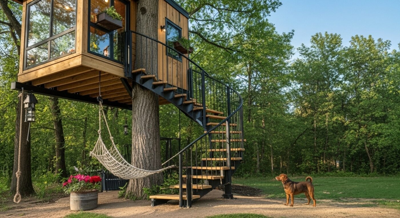 The elevated treehouse dog house is perfect for adventurous pups who love a little excitement with their comfort. Designed with ramps, stairs, and multiple levels, this raised structure encourages play, exploration, and physical activity, keeping energetic dogs engaged and happy. Spacious balconies and open-air areas provide safe outdoor views, while natural wood construction ensures the design blends seamlessly with backyard landscapes. Ideal for high-energy breeds, this treehouse dog house combines fun, adventure, and a cozy retreat, making it a standout addition to any modern yard.