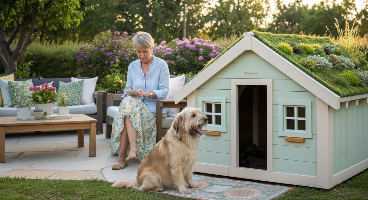 Eco-Friendly Dog House with Recycled Materials and Green Roof