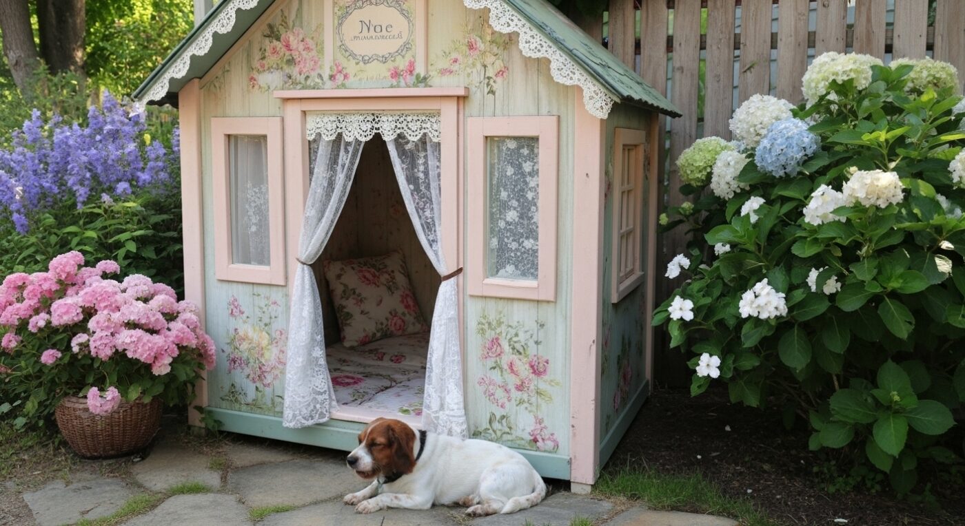 The Shabby Chic Dog House combines vintage charm with modern design, creating a cozy and stylish retreat for your furry friend. Featuring delicate floral patterns, soft pastel colors, and distressed finishes, this dog house brings warmth and personality to any backyard or garden. Its inviting design not only provides comfort for pets but also enhances the aesthetic appeal of your outdoor space. Perfect for pet owners who love chic, decorative touches, the shabby chic dog house allows your pup to enjoy a comfortable, fashion-forward home while complementing your own style.