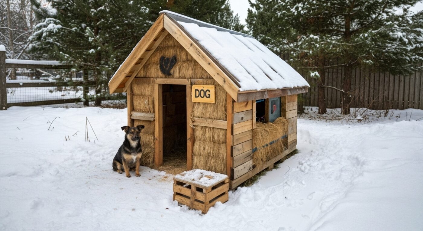 A pallet house with straw insulation offers an eco-friendly and budget-friendly solution for winter dog sheltering. Built from repurposed wooden pallets, this structure provides a strong, stable frame, while the straw insulation helps keep your dog warm and comfortable during cold weather. Straw is a naturally breathable, moisture-resistant material that traps heat effectively, creating a cozy and healthy environment for your pet. This sustainable design is an excellent choice for dog owners who want an affordable winter shelter without compromising on warmth, safety, or durability.