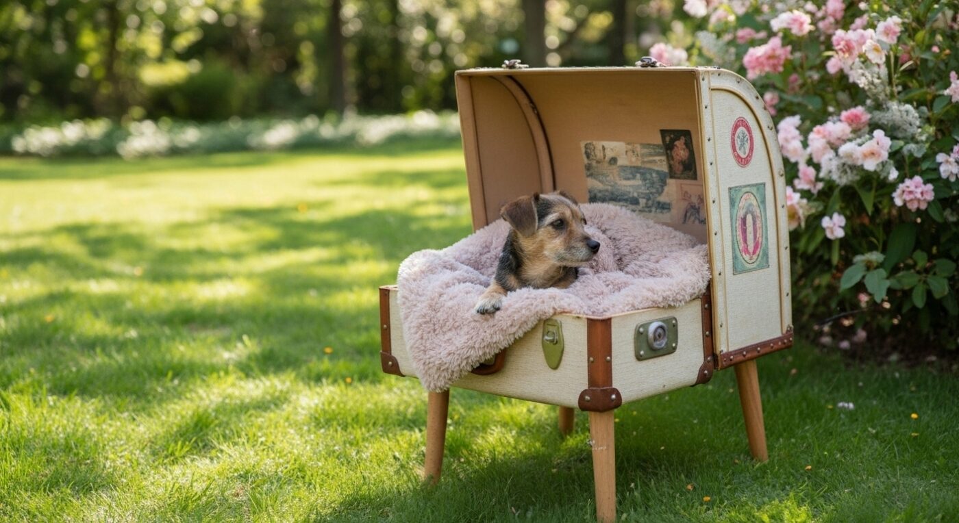 The Vintage Suitcase Dog House on Legs is a creative and nostalgic option for pet owners who want a stylish and functional outdoor retreat for their pups. This unique design transforms a classic suitcase into a cozy dog house, blending retro charm with practical comfort. Elevated on sturdy legs, it keeps your pet dry, clean, and safely lifted off the ground. The rustic, whimsical look makes it a standout piece in any backyard, while the snug interior provides a secure and inviting space for your furry companion. This one-of-a-kind dog house combines décor and comfort, making it a perfect choice for pets and owners who love vintage-inspired style.